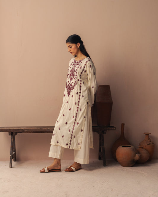 Maroon hand embroidered set