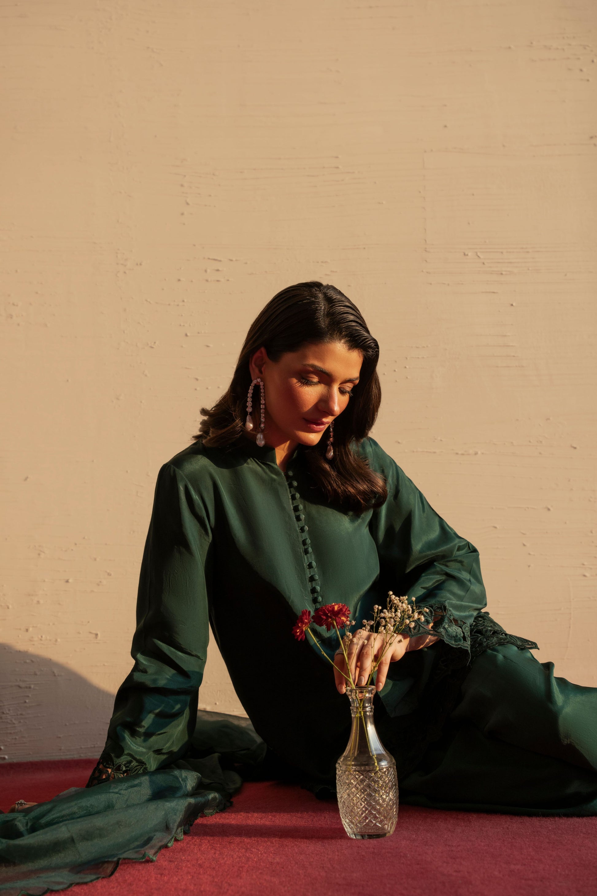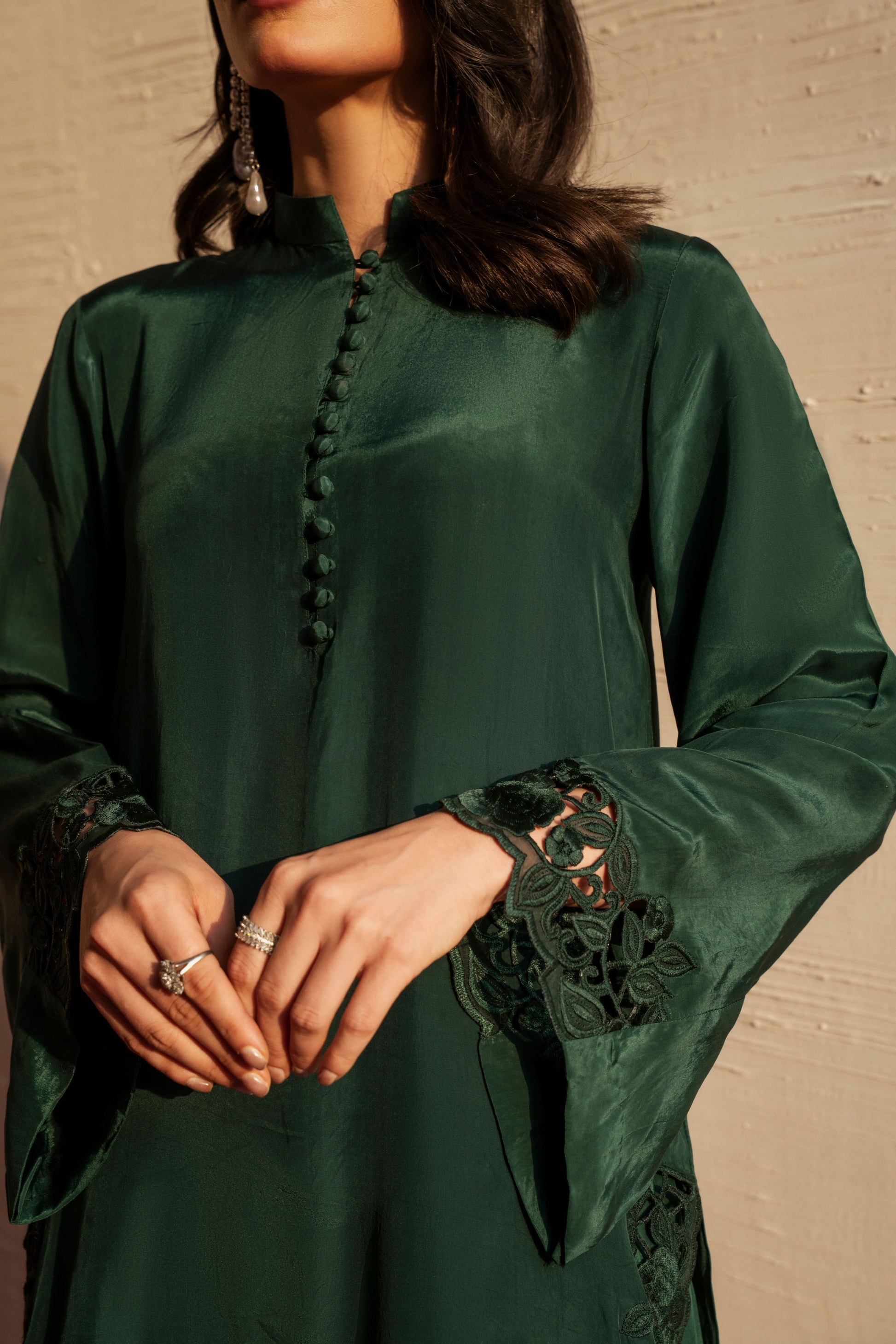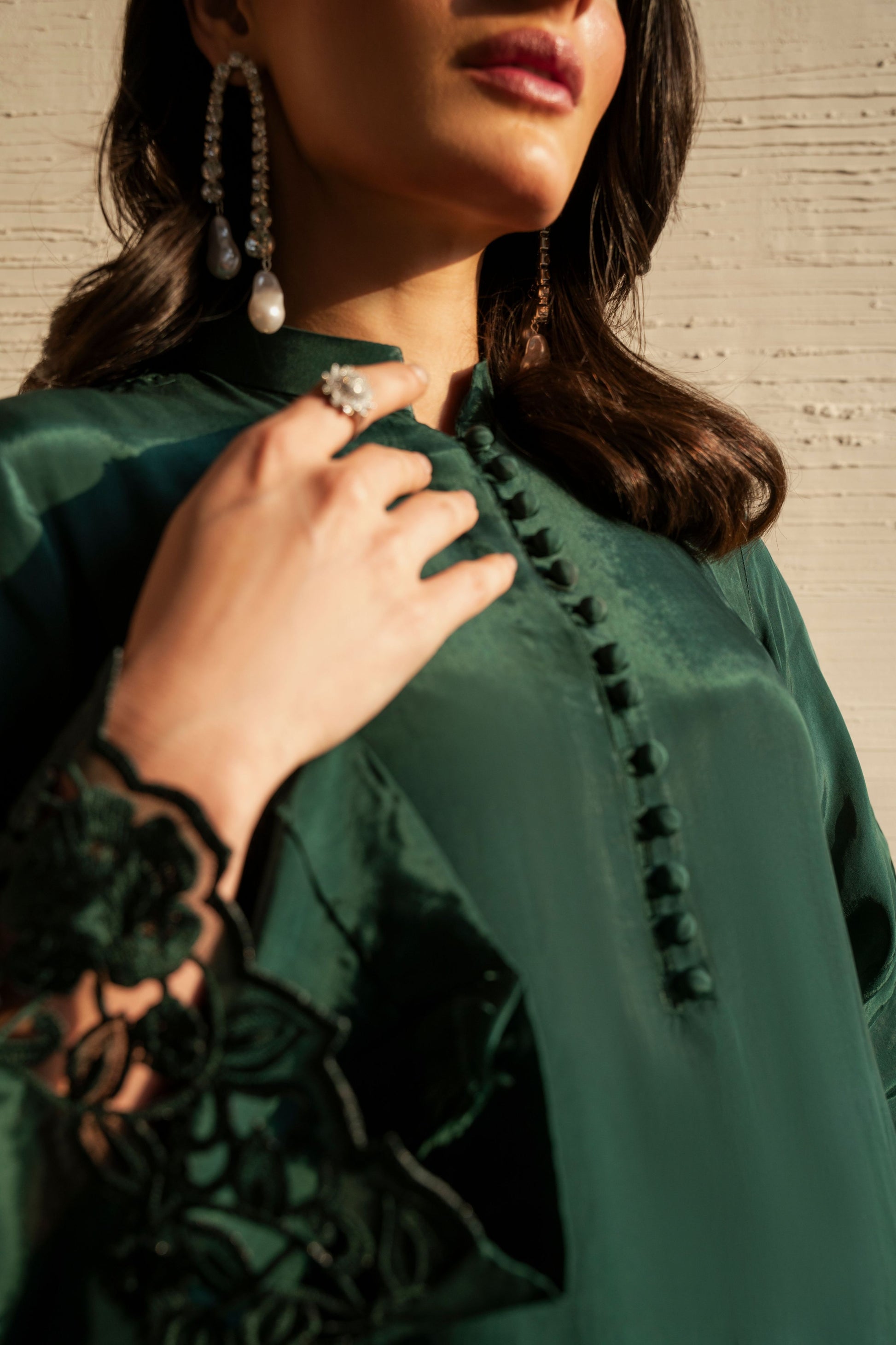 Elara embodies effortless elegance in a serene green hue. Designed with a fluid silhouette that drapes beautifully, it feels fresh, refined, and timeless. A piece that brings calm confidence and understated luxury to every look.